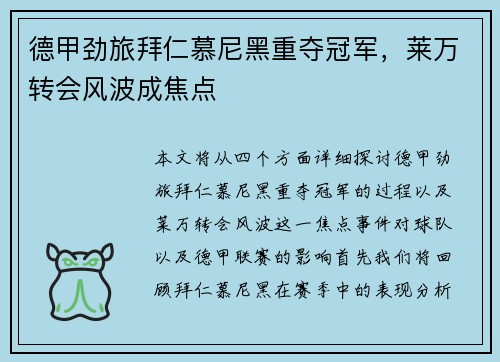 随着F1大奖赛的赛季进入尾声,赛场上的竞争愈加激烈。尤其是在Hamilton与Verstappen两位车手的争冠之战中,双方势均力敌,激战正酣,逐渐进入白热化阶段。本文将从四个方面详细阐述这一场精彩绝伦的争夺,分别是两位车手的车队背景与实力对比、赛季中关键比赛的表现、两位车手的驾驶风格与策略对比、以及F1大奖赛赛季结束前的未来趋势。通过这些角度,我们将全面分析Hamilton与Verstappen争冠的局势,进一步了解他们在赛场上如何展现出顶尖的竞技水平以及如何在压力中持续发挥出色。最终,我们将对整个赛季及其争冠局势进行总结,展望F1的未来发展。
